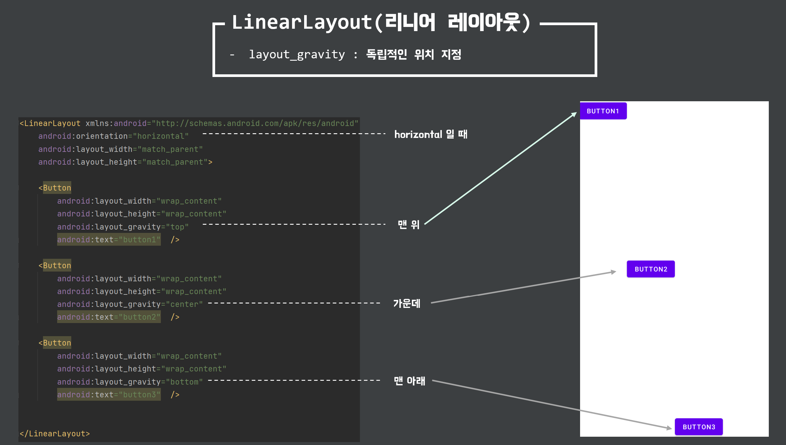 다른 레이아웃과 다르게 방향 속성을 반드시 지정