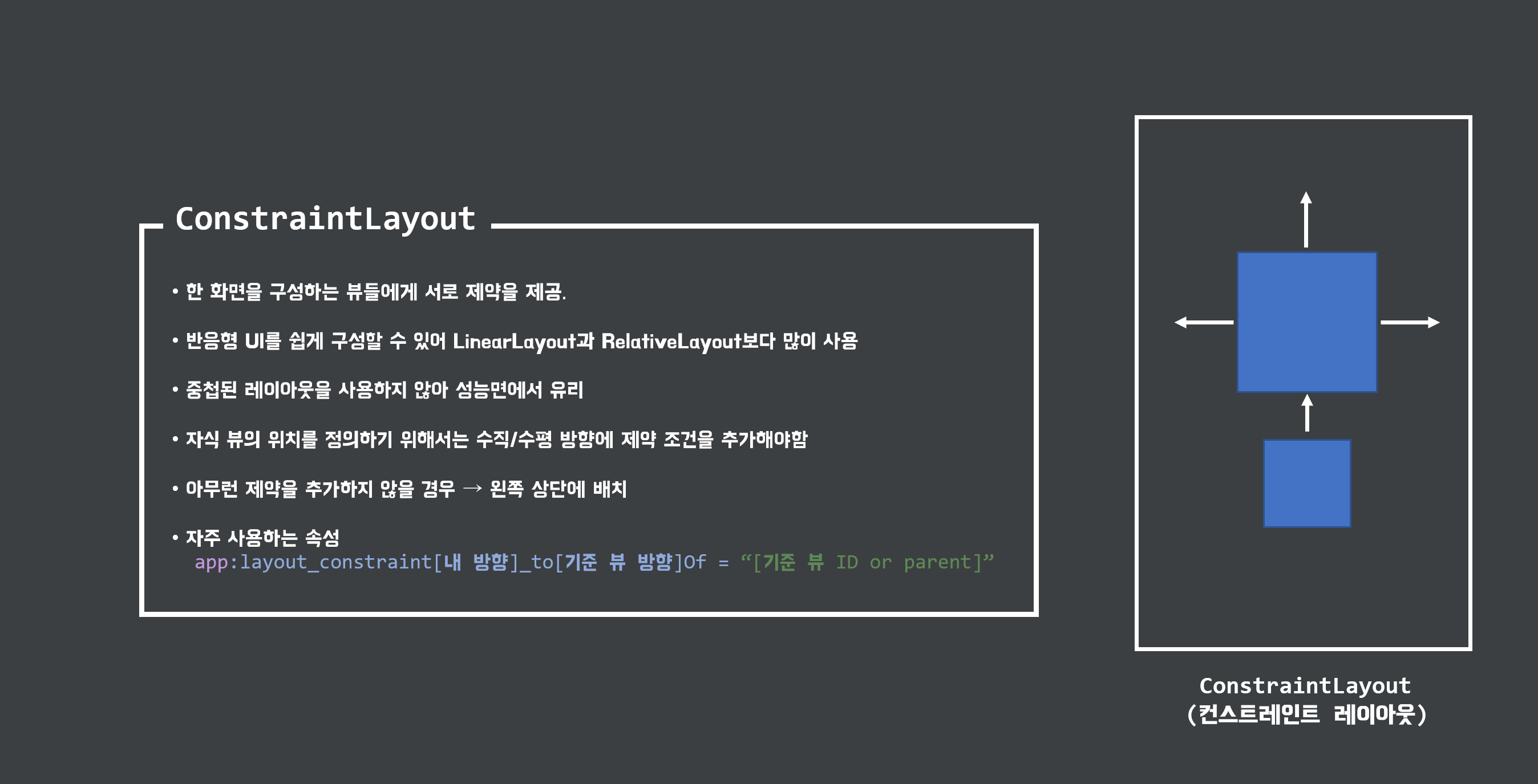 반응형 UI를 쉽게 구성할 수 있어 LinearLayout과 RelativeLayout보다 많이 사용