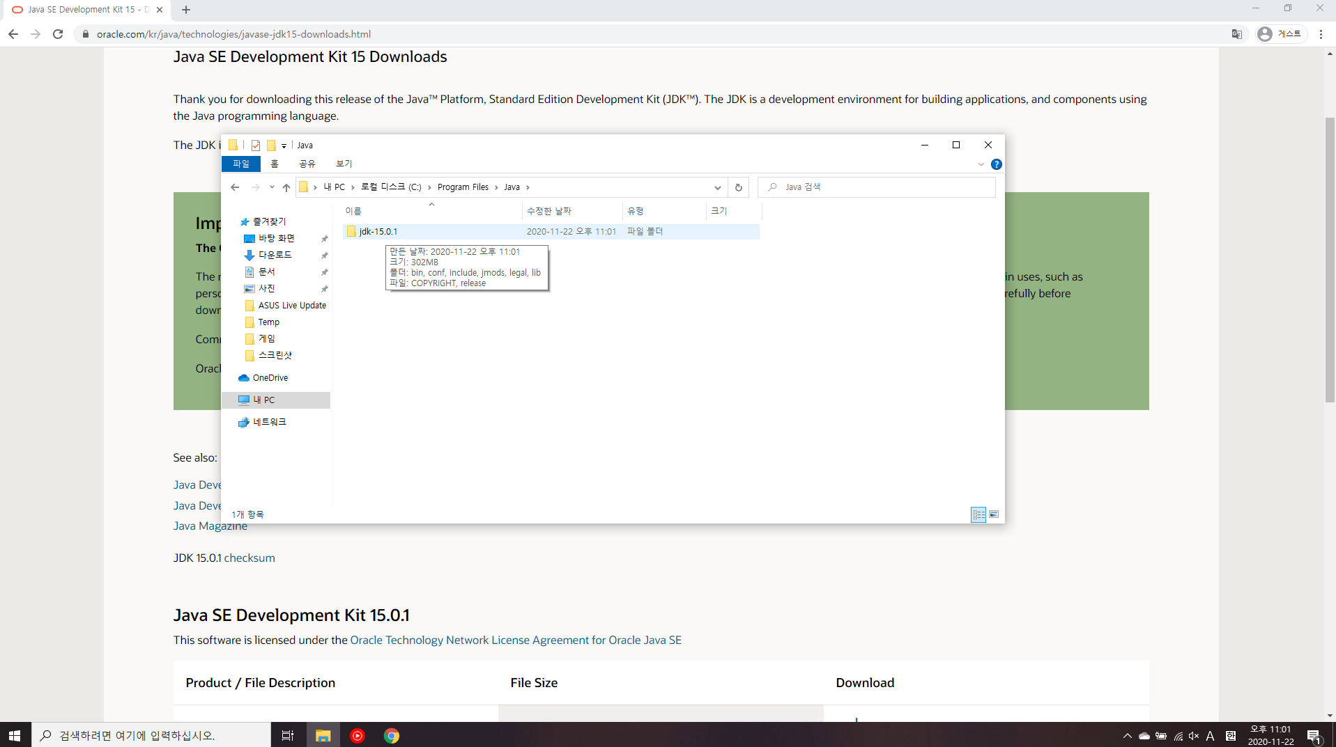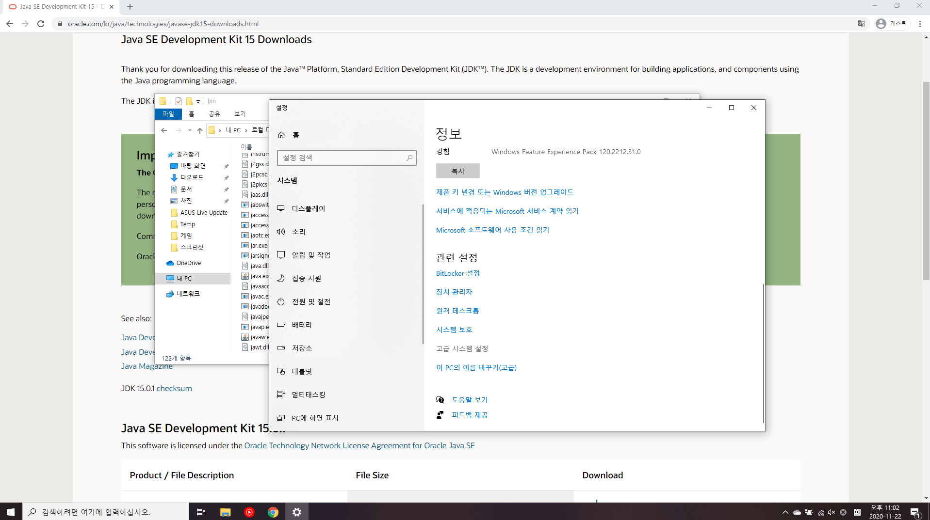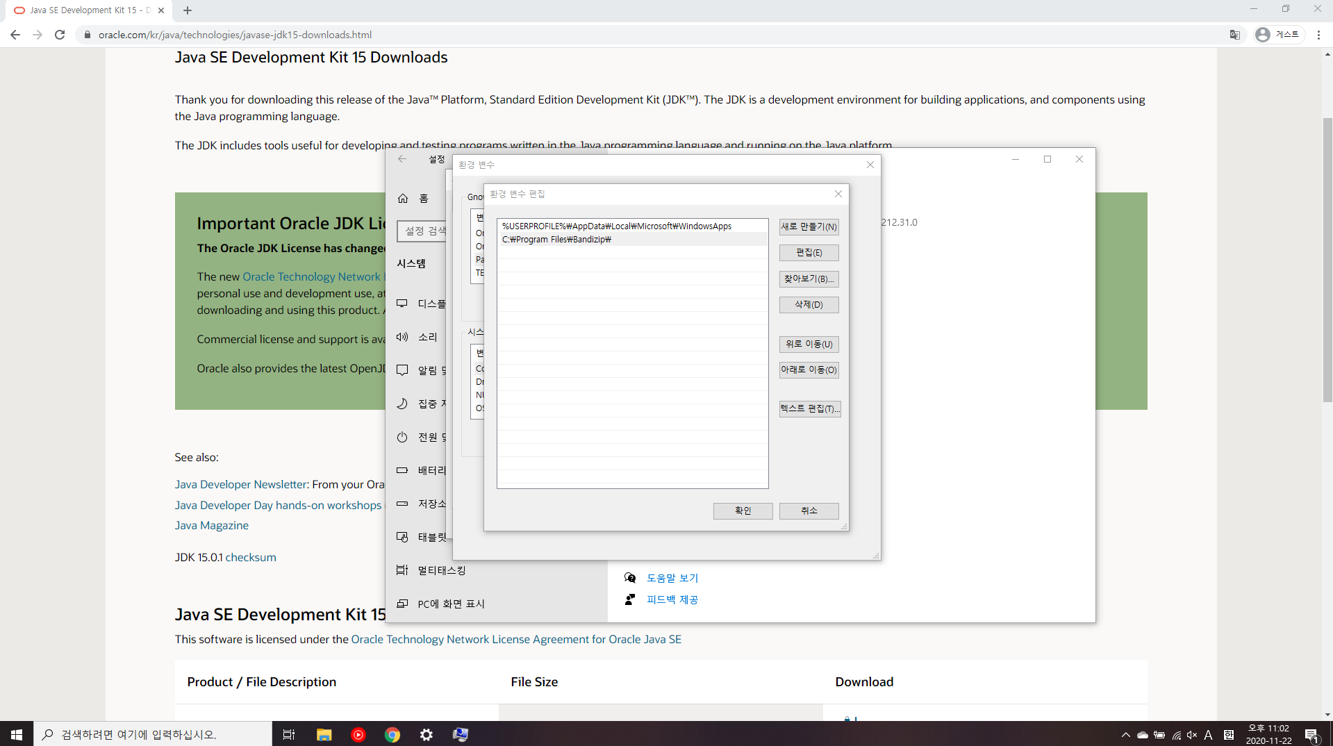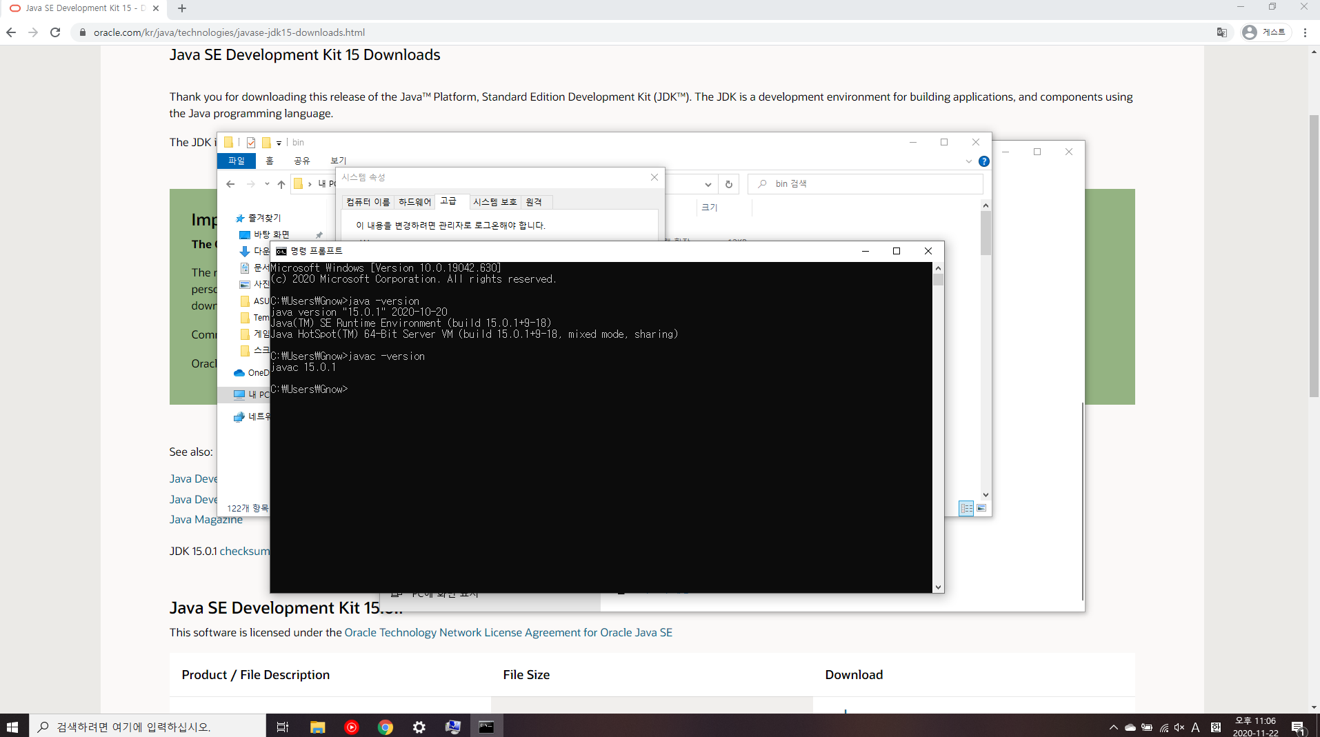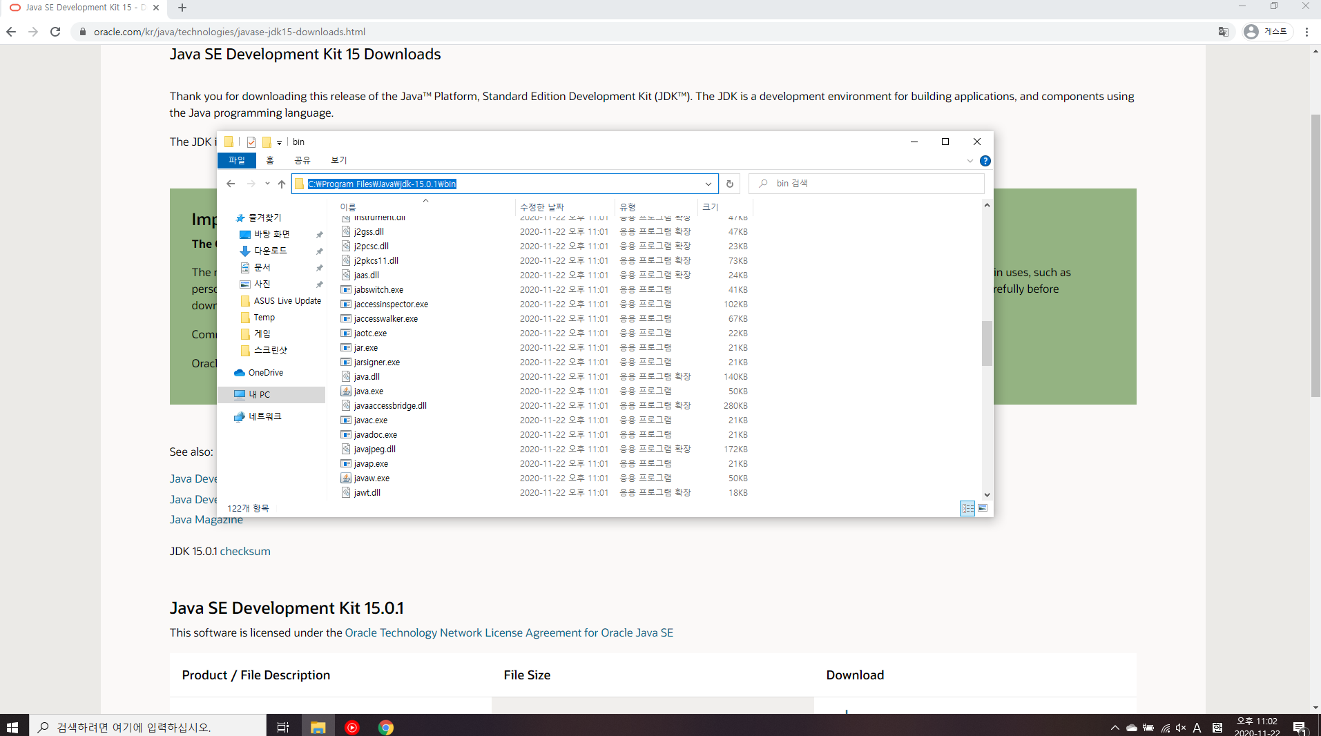그럼 위처럼 C:\Program Files\Java\jdk-15.0.1\bin을 ctrl +c 로 복사합니다.