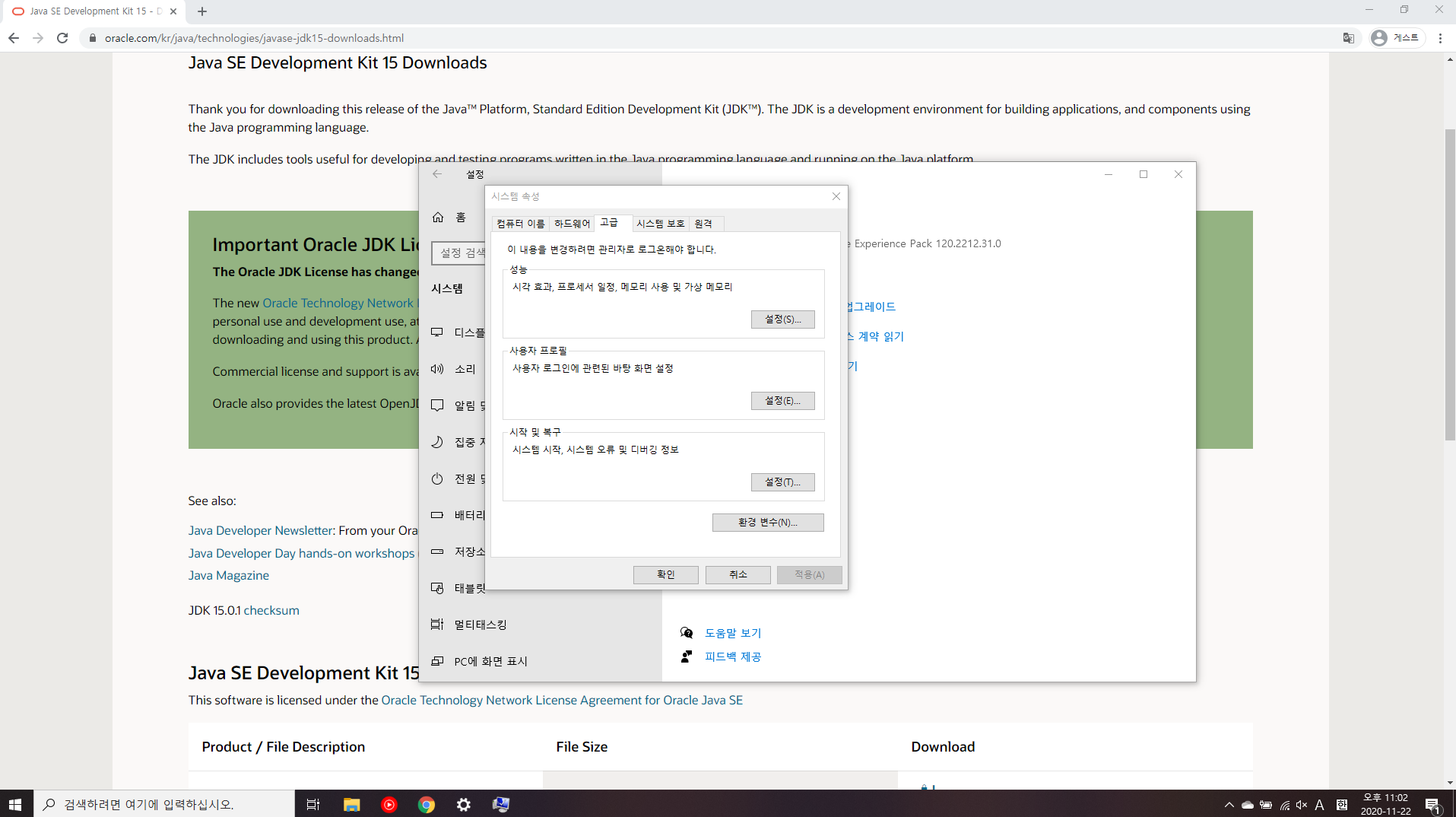 짜잔 이렇게 시스템 속성의 고급 탭에 들어 와집니다!