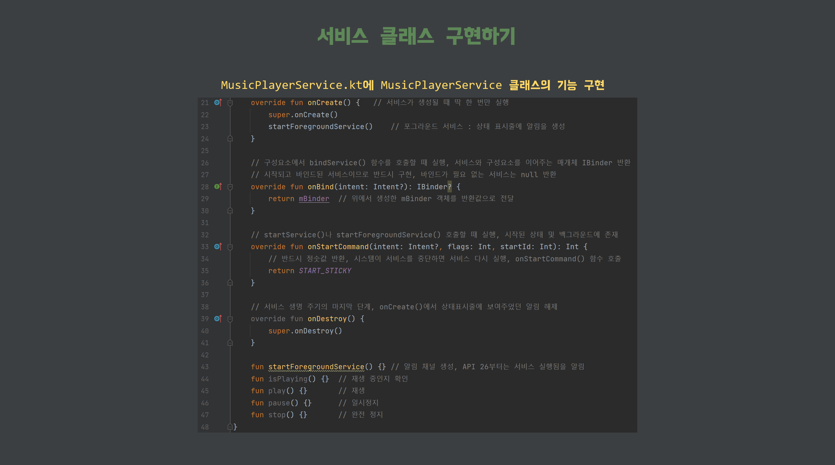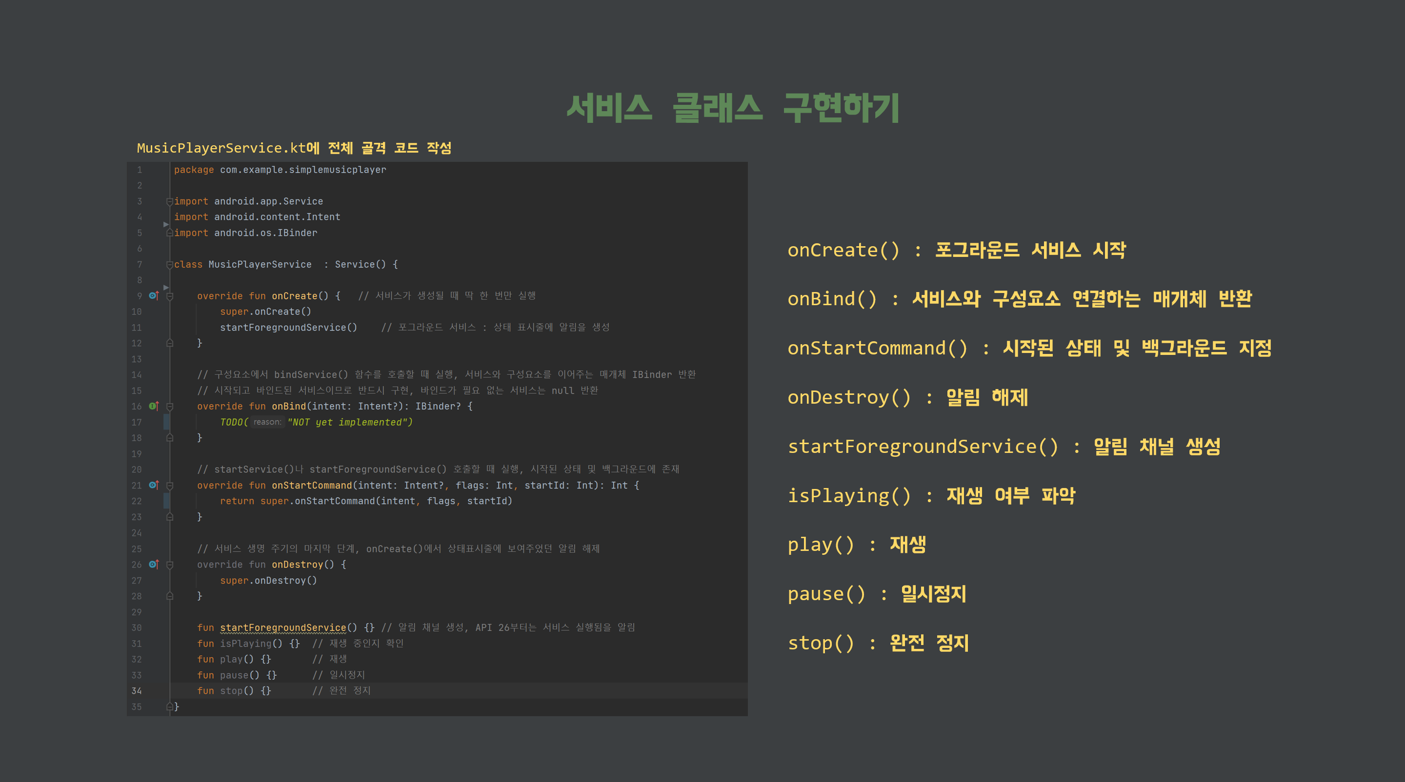 [MusicPlayerService.kt] 의 뼈대 코드