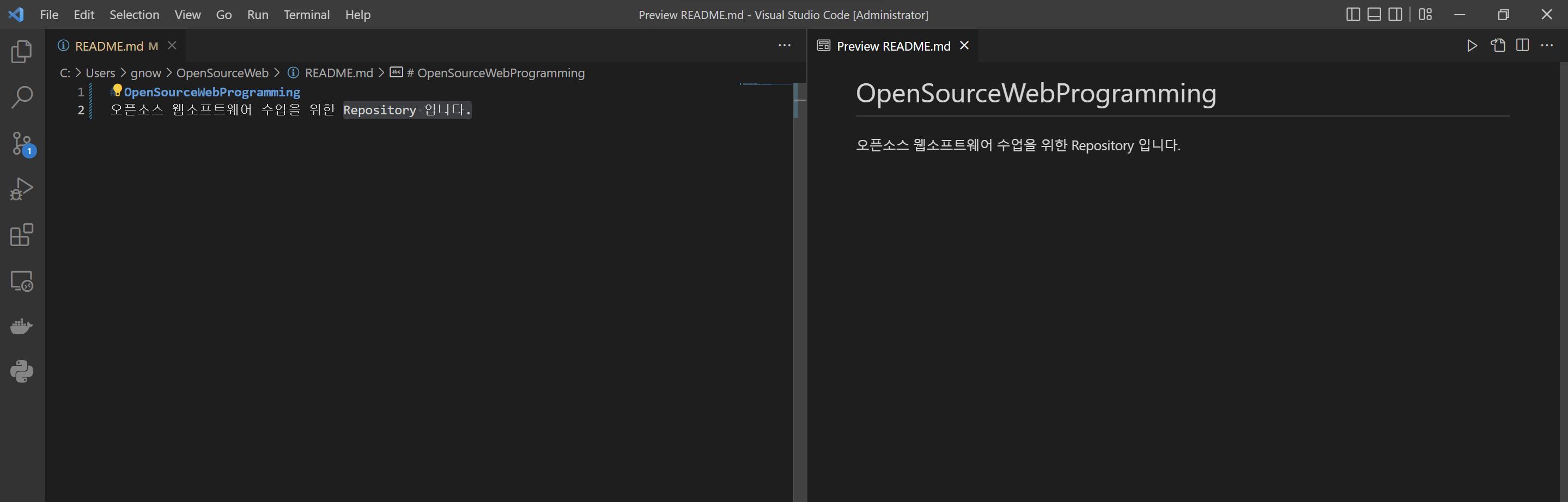 폴더에서 README.md 파일을 VSCode나 원하는 에디터로 열어서 수정하면 되는데 한가지 문제점이 있었다.