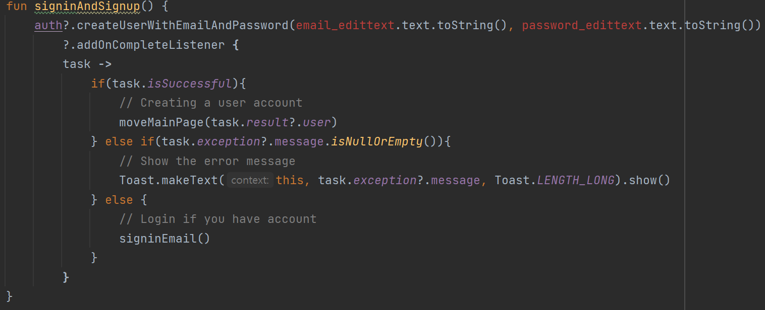 firebase를 통한 회원가입을 만들던 중 LoginActivity에서